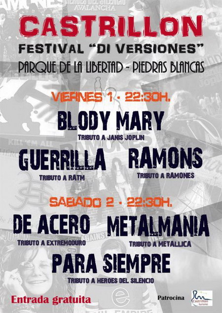 Los próximos días 1 y 2 de julio de 2011, tendrá lugar en el parque de la Libertad de Piedras Blancas el festival di - versiones. El festival, contará con bandas tributo que interpretarán los mejores temas de 6 grandes bandas de la historia del rock, tanto a nivel nacional como internacional: Guerrilla (tributo a Rage Against The Machine), Metalmania (tributo a Metallica), Ramons (tributo a Ramones), De acero (tributo a Extremoduro), Para siempre (tributo a Heroes del Silencio) y Blody Mary (tributo a Janis Joplin). El cartel por días: