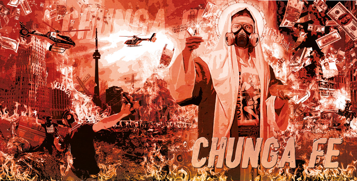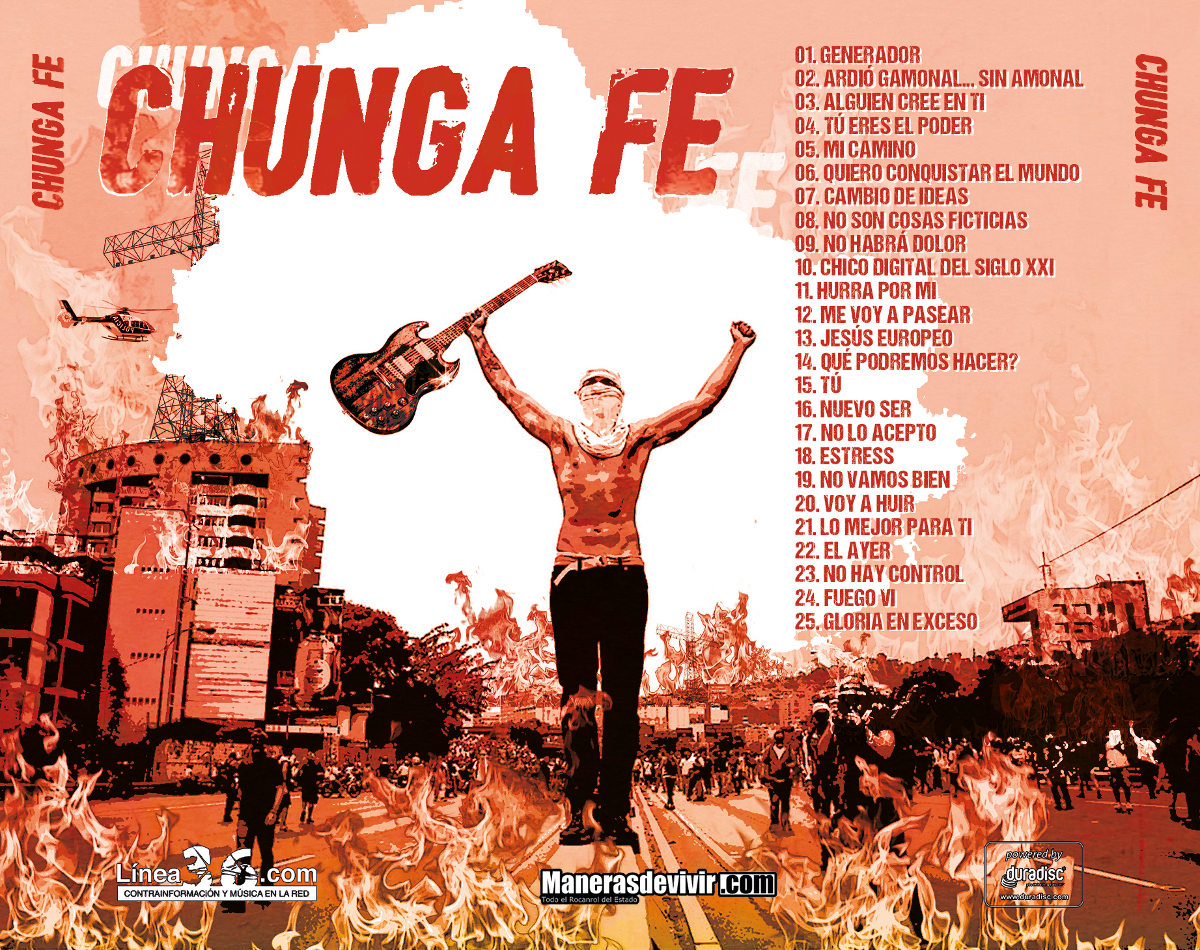 La semana pasada presentamos el póster de presentación de Chunga Fe (versiones en castellano de Bad Religion), hoy ya podemos ver la portada y contraportada con la lista de los 25 temas. Del diseño se ha encargado Carlos Undergroove Aka Dabunker.