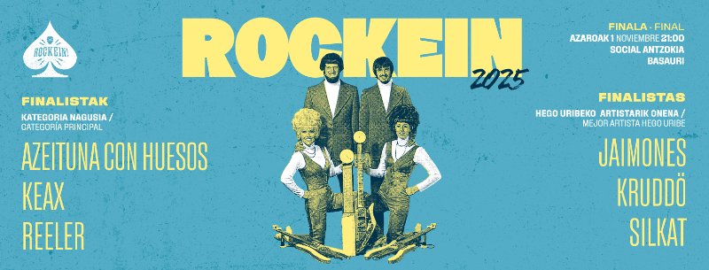 Rockein 2025: Azeituna con Huesos, Keax y Reeler, finalistas de la categorÃa principal01.10.2025 | BIBA! | Contenido editado por Maneras de Vivir La banda guipuzcoana Azeituna con Huesos (electrónica, pop, jazz), el trío vizcaíno Keax (ex componentes de The Owl Project, con influencias como LCD Soundsystem o Ratatat) y Reeler, cuarteto de rock alternativo con músicos de Bizkaia, Polonia e Irlanda y base en Bilbao, son las tres propuestas finalistas en la categoría principal de Rockein. La final se celebrará el sábado 1 de noviembre en el Social Antzokia de Basauri, con acceso gratuito mediante invitación. Jaimones, Kruddö y Silkat optarán al premio a Mejor artista de Hego Uribe. La final contará con horarios de 21.00 (apertura de puertas) y 21.30 (comienzo de conciertos). Las invitaciones se pueden retirar de forma gratuita en socialantzokia.eus o en taquilla del teatro. En el premio a Mejor artista de Hego Uribe se medirán Jaimones (rock americano 70s-80s), Kruddö (dúo de rock duro y stoner) y Silkat (trío de indie rock con músicos de Bilbao y Galdakao). Como es habitual, el jurado anunciará directamente tras la final los proyectos ganadores de las cinco categorías del concurso, incluidas Premio Bizkaia, Mejor artista en euskara y el Premio Eskarabillera. El plazo de inscripción de esta decimotercera edición se cerró el 26 de junio y reunió 196 propuestas de Euskadi y Navarra, marcando un nuevo récord de participación por décimo año consecutivo. Jurado profesional 2025: Arantzazu Pinto ‘Nara’ (contratación de artistas en Primavera Sound); Jon Agirrezabalaga (productor e ingeniero de sonido en El Tigre Studios; músico y compositor en Zabala); Ibone Iza (responsable de contenidos de BIME Pro, en Last Tour); Iker Bárbara (coordinador de la edición de Euskal Herria y La Rioja de la revista MondoSonoro, promotor y DJ); y Jon Zugazagoitia (concejal de Juventud, Deporte e Informática del Ayuntamiento de Basauri). Premios: el Mejor artista de la Categoría Principal grabará un EP profesional (mínimo cinco canciones) en los estudios El Tigre de Bilbao, además de un videoclip profesional y una actuación en el festival MAZ Basauri. El Mejor artista de Hego Uribe obtendrá la grabación de un videoclip profesional y actuación en MAZ Basauri. El Premio Bizkaia incluye la grabación de un EP profesional en El Tigre y actuación en MAZ Basauri. Las categorías de Mejor artista en euskara y Premio Eskarabillera contemplan actuación en MAZ Basauri. ![]() ![]() 10 últimas noticias publicadas